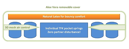 - Advanced ventilated TFK pocket spring core of the latest type, with individually encapsulated springs, and complete elimination of partner disturbance