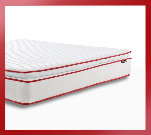 The Apollo Red mattress introduces the latest mini spring Pillow Top technology, a unique system that revolutionises comfort by its clockwork design: Inside the Pillow Top there is a layer of Two Thousand mini springs* that work independently under the Natural Latex layer. The mini springs respond to any movement or position, creating superb comfort in any usage scenario. The Pillow Top sits on an advanced TFK pocket spring core of the latest type, that eliminates completely any partner disturbance, and provides balanced reflexive support in any sleep position. Both layers of springs (top mini spring, and bottom TFK pocket spring) work in tandem to create an unparallel comfort and optimal adjustment to any weight.