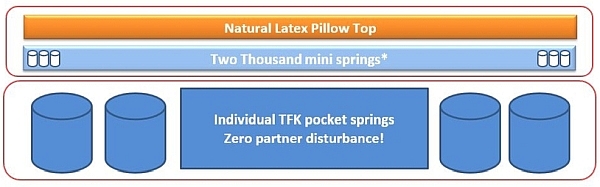 - Advanced TFK pocket spring core of the latest type, with individually encapsulated springs, and complete elimination of partner disturbance