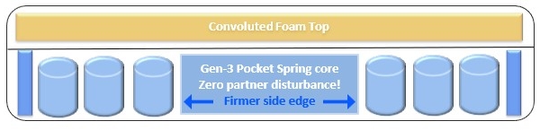 - Gen-3 Pocket Spring core with two independent support centres and complete elimination of partner disturbance